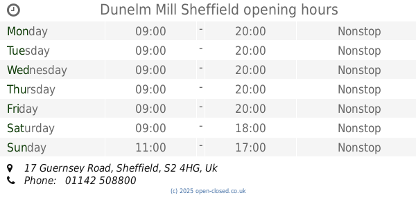 It is also possible to : Edit these OPENING HOURS of Store Dunelm Mill In Sheffield, 17 Guernsey Road,